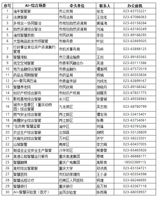 各场景牵头单元以AI+分析场景扶植为载体,数字沉庆扶植带领小组办公室印发《第三批AI+分析场景清单》。!